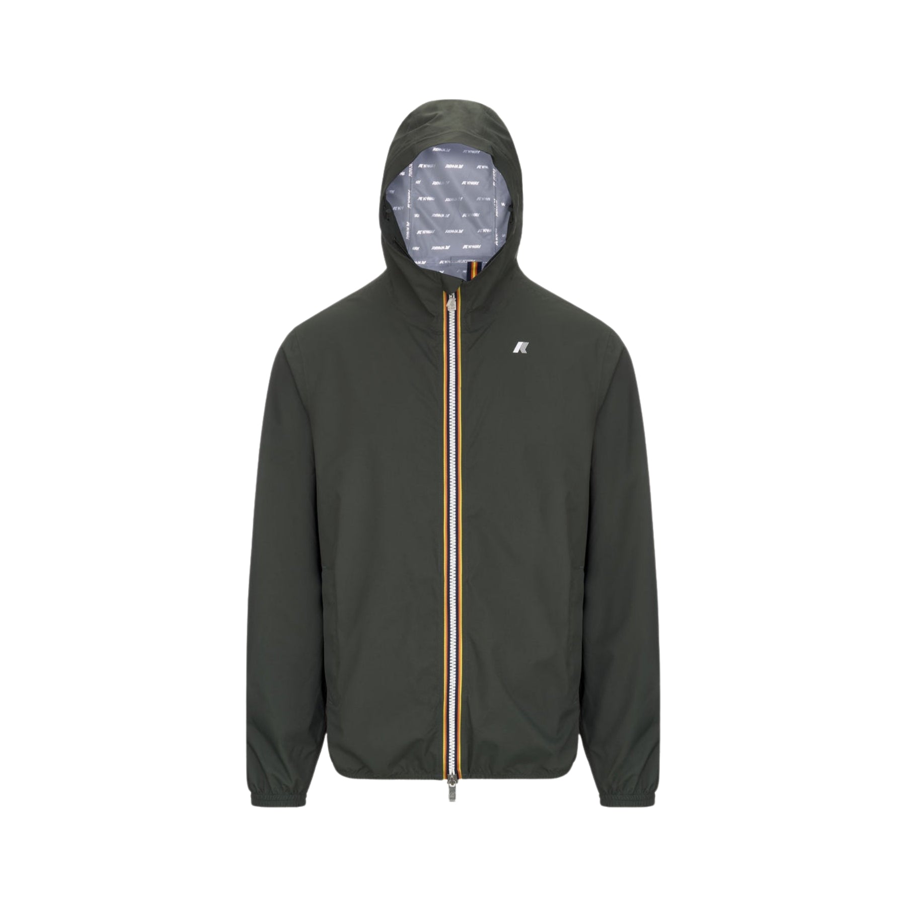Jack è una giacca corta da uomo ideale per le mezze stagioni e con vestibilità slim, realizzata in tessuto tecnico elasticizzato, che segue i movimenti e protegge dal vento e dalla pioggia fino a 10000 colonne d’acqua. L'interno è foderato con una membrana isolante decorata con lettering K-Way stampato all over in tonalità argento. Le tasche laterali con zip, il cappuccio avvolgente, i polsini e i bordi con inserti elastici sono dettagli funzionali che garantiscono aderenza e una vestibilità comoda e veloce.
