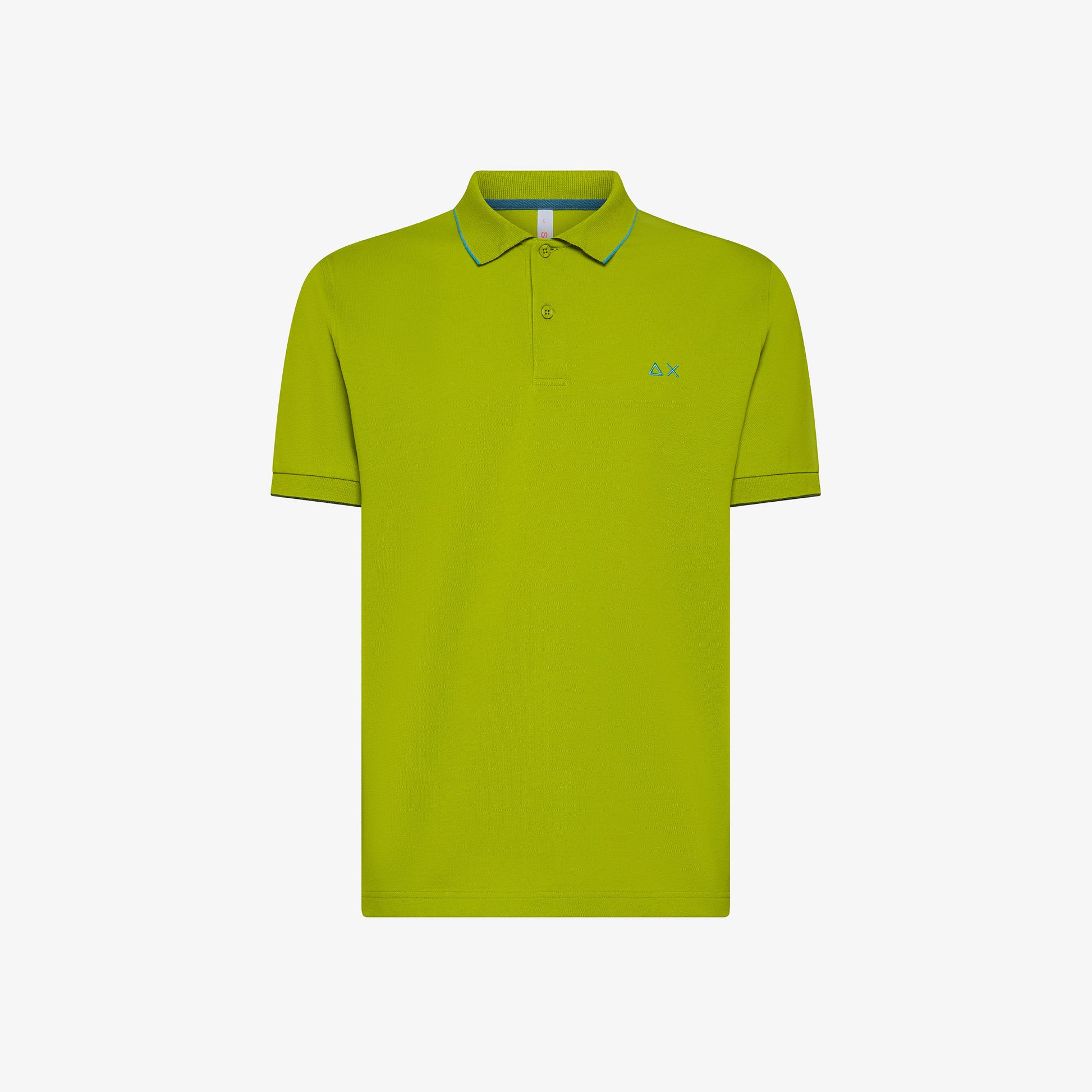 SUN 68 POLO SMALL STRIPES ON COLLAR S/S OLIVA A35110