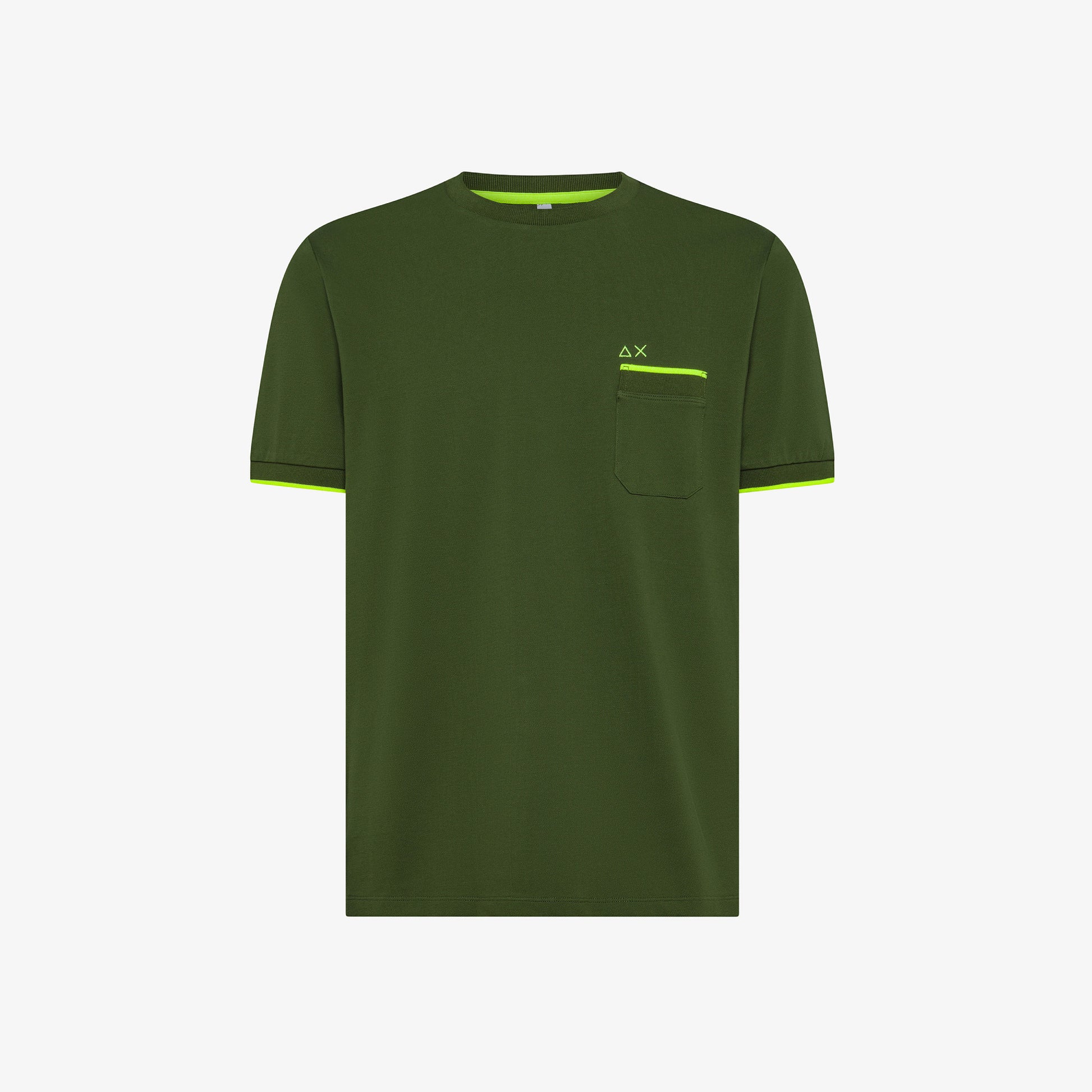 SUN 68 T-SHIRT PIQUET SMALL STRIPE FLUO S/S VERDE SCURO T35124